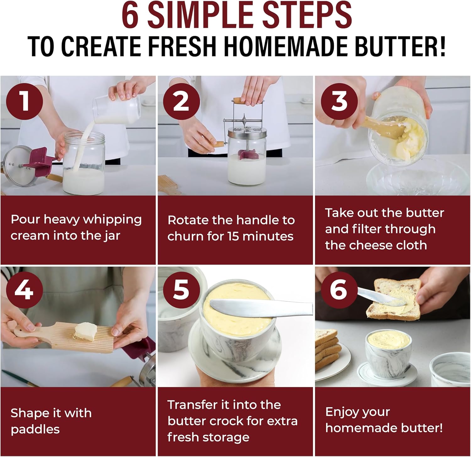- š BUTTER PADDLES & E-BOOK INCLUDED: The only set on Amazon that includes Beech Wood Butter Paddles for a complete butter making experience. The eBook includes a selection of recipes and a step by step instruction guide. Don't forget to use the leftover fresh buttermilk for the tastiest old fashioned vintage pancakes.